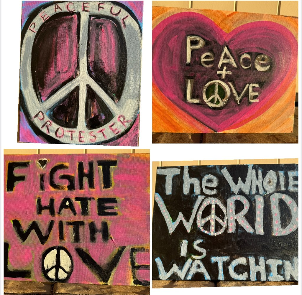 $600 framedI can paint anything. $200Baaaa $550Pack of 25 Cards and envelopes for $40Available Size 24 X 30 Unframed $400SoldRainbow Forest $300Unframed $200Jerry $350SoldAvailable $450$1000$800Sold$450 unframed $750 framed $700 available at Angeline’s BakerySold$550 available at Cottonwood Cafe$850Quick Ride $750Baby Leo 24 X 48 $500Pink Flamingo size is 30 x 40 inches$750$950Available $650Peace and Love $75 each$1000$700Fair Day $300Availavle $175sold$850Available $225SoldSoldCottonball flower $400Sold$400 available at Angeline’s BakeryTulips $450Available $350Sold$200 to paint what ever you want on your tire cover$1500SoldDonationAvailable $175sold
