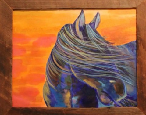 Held by the Horizon captures a moment of quiet communion between strength and stillness. The horse is turned away from the viewer, inviting reflection rather than performance, as warm sunset tones glow behind cool, flowing blues of the mane and form. 16 x 20 $299