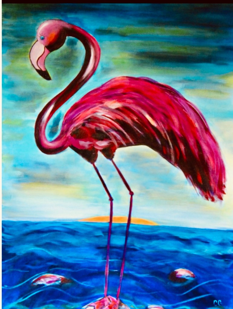 Stillness in Motion captures the quiet strength of balance — the kind that comes from standing firmly in your own rhythm while the world moves around you. The flamingo, poised delicately above the water, becomes a symbol of grace under pressure, resilience through change, and confidence without force.